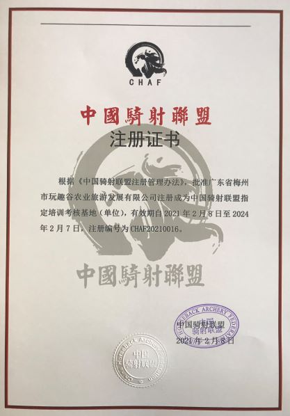 祝贺广东省梅州市玩趣谷农业旅游发展有限公司注册成为中国骑射联盟指定培训考核基地(单位)。