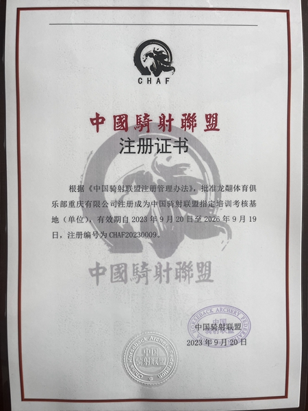 根据《中国骑射联盟注册管理办法》,批准六骏谷骑营和龙翷体育俱乐部重庆有限公司注册成为中国骑射联盟指定培训考核基地(单位)。